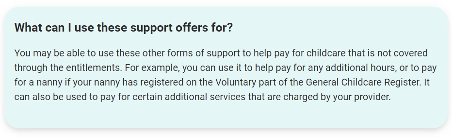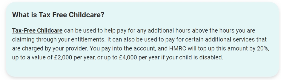 You can also apply for Tax-Free Childcare or Universal Credit childcare. You cannot use both of these at the same time.